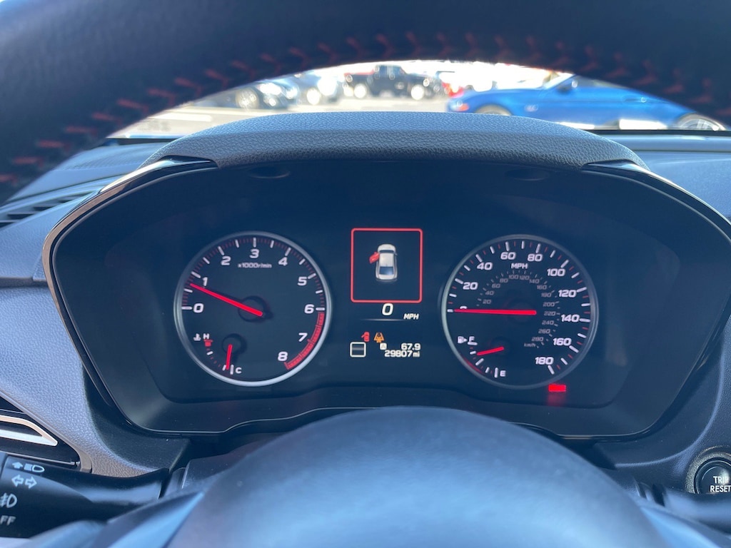 4-Wheel Disc Brakes, 6 Speakers, ABS brakes, Air Conditioning, Alloy Wheel Locks, Alloy wheels, AM/FM radio: SiriusXM, Auto High-beam Headlights, Auto-dimming Rear-View mirror, Automatic temperature control, Brake assist, Bumpers: body-color, Cloth Upholstery w/Red Stitching, Driver door bin, Driver vanity mirror, Dual front impact airbags, Dual front side impact airbags, Electronic Stability Control, Emergency communication system: STARLINK Safety and Security (Subscription Required), Exterior Parking Camera Rear, Four wheel independent suspension, Front anti-roll bar, Front Bucket Seats, Front Center Armrest, Front dual zone A/C, Front fog lights, Front reading lights, Fully automatic headlights, harman kardon & Moonroof, harman/kardon Speaker System, Heated door mirrors, Heated front seats, Illuminated entry, Knee airbag, Leather Shift Knob, Leather steering wheel, LED Upgrade - Map & Dome Lights, Low tire pressure warning, Occupant sensing airbag, Outside temperature display, Overhead airbag, Overhead console, Panic alarm, Passenger door bin, Passenger vanity mirror, Performance Design Heated Front Bucket Seats, Power door mirrors, Power steering, Power Tilt Up Moonroof, Power windows, Radio data system, Radio: Subaru STARLINK 11.6 Multimedia Plus Sys, Rear anti-roll bar, Rear seat center armrest, Rear window defroster, Remote keyless entry, Security system, Speed control, Speed-sensing steering, Split folding rear seat, Spoiler, Sport steering wheel, STARLINK/Apple CarPlay/Android Auto, Steering wheel mounted audio controls, Sunshade - Windshield, Tachometer, Telescoping steering wheel, Tilt steering wheel, Traction control, Trip computer, Variably intermittent wipers, Wheels: 18 x 8.5 Dark Gray Finish Alum Alloy.