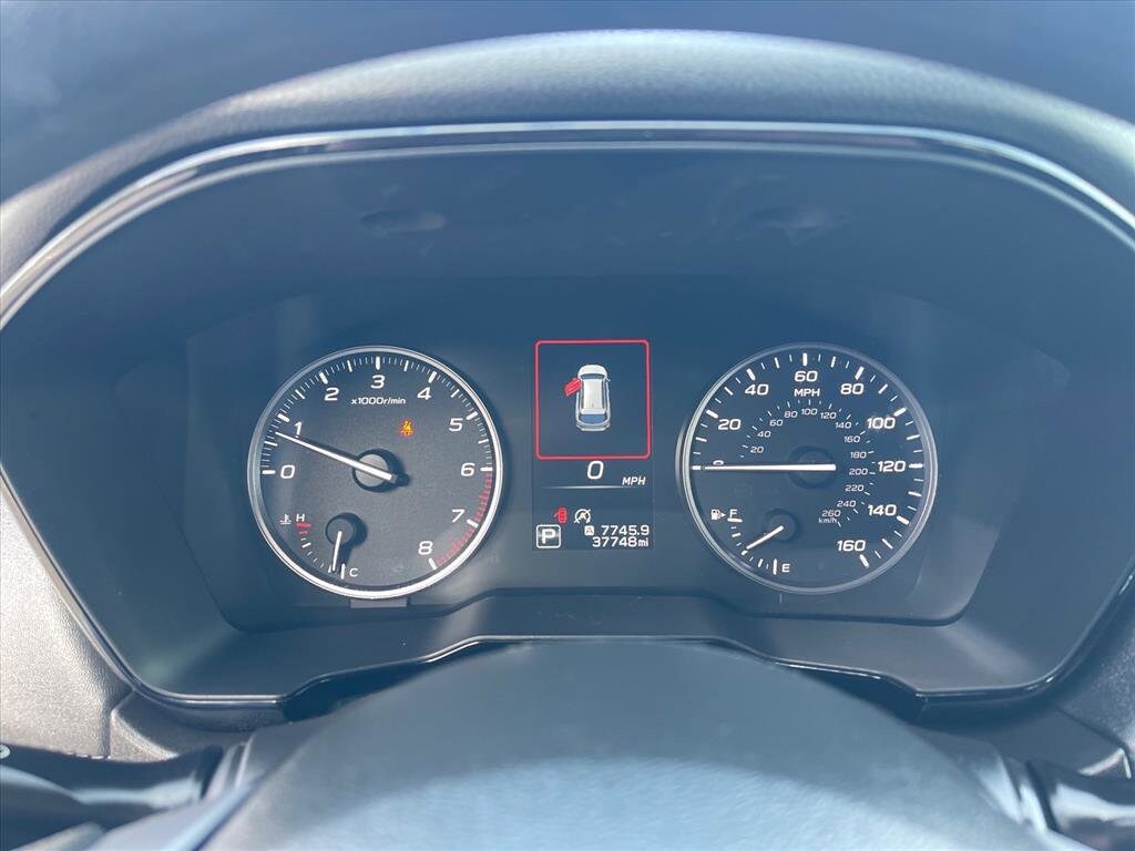 3.90 Axle Ratio, 4 Speakers, 4-Wheel Disc Brakes, ABS brakes, Air Conditioning, All-Weather Floor Liners, Alloy wheels, AM/FM radio: SiriusXM, Auto High-beam Headlights, Automatic temperature control, Brake assist, Bumpers: body-color, Cloth Upholstery, Driver door bin, Driver vanity mirror, Dual front impact airbags, Dual front side impact airbags, Electronic Stability Control, Exterior Parking Camera Rear, Four wheel independent suspension, Front anti-roll bar, Front Bucket Seats, Front Center Armrest w/Storage, Front fog lights, Front reading lights, Fully automatic headlights, Illuminated entry, Knee airbag, Low tire pressure warning, Occupant sensing airbag, Outside temperature display, Overhead airbag, Overhead console, Panic alarm, Passenger door bin, Passenger vanity mirror, Power door mirrors, Power steering, Power windows, Radio: Subaru STARLINK Dual 7.0 Multimedia System, Rear anti-roll bar, Rear seat center armrest, Rear window defroster, Rear window wiper, Remote keyless entry, Roof rack, Security system, Speed control, Speed-sensing steering, Split folding rear seat, Spoiler, Standard Model, STARLINK/Apple CarPlay/Android Auto, Steering wheel mounted audio controls, Steering Wheel Paddle Shift Control Switches, Tachometer, Telescoping steering wheel, Tilt steering wheel, Traction control, Trip computer, Variably intermittent wipers, Wheels: 17 x 7J Black Aluminum Alloy, Windshield Sunshade.