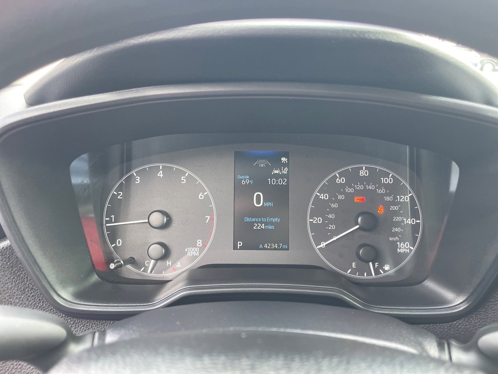 4-Wheel Disc Brakes, 6 Speakers, ABS brakes, Air Conditioning, AM/FM radio: SiriusXM, Apple CarPlay/Android Auto, Auto High-beam Headlights, Automatic temperature control, Brake assist, Bumpers: body-color, Delay-off headlights, Driver door bin, Driver vanity mirror, Dual front impact airbags, Dual front side impact airbags, Electronic Stability Control, Emergency communication system: Safety Connect (up to 10-year trial subscription), Exterior Parking Camera Rear, Fabric Seat Trim, Front anti-roll bar, Front Bucket Seats, Front Center Armrest, Front reading lights, Front wheel independent suspension, Fully automatic headlights, Illuminated entry, Knee airbag, Low tire pressure warning, Occupant sensing airbag, Outside temperature display, Overhead airbag, Panic alarm, Passenger door bin, Passenger vanity mirror, Power door mirrors, Power steering, Power windows, Radio data system, Radio: 8 Toyota Audio Multimedia, Rear anti-roll bar, Rear seat center armrest, Rear side impact airbag, Rear window defroster, Remote keyless entry, Speed control, Split folding rear seat, Steering wheel mounted audio controls, Tachometer, Telescoping steering wheel, Tilt steering wheel, Traction control, Trip computer, Wheels: 16 Steel with Covers.